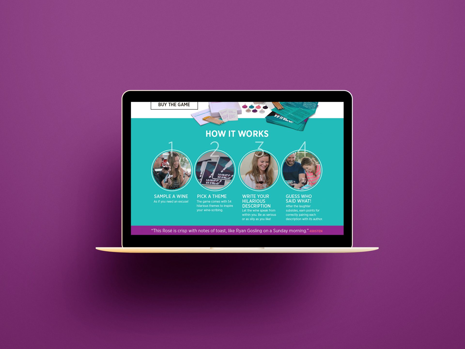 Read Between The Wines! is a modern board game that inspires players to write their own creative wine tasting notes, with the assistance of a deck of hilarious theme cards. The brand attitude is there “is no wrong way to taste wine?”