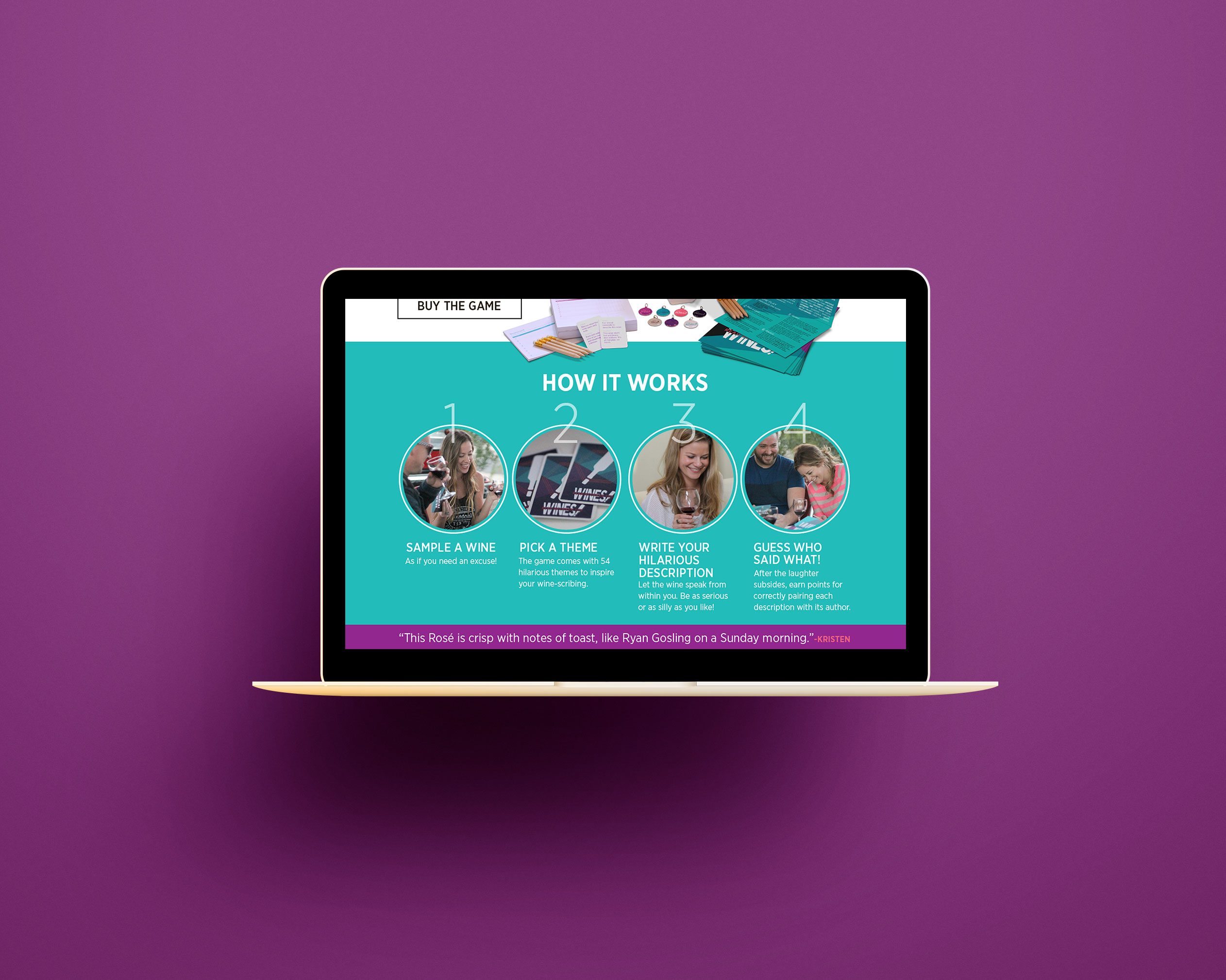 Read Between The Wines! is a modern board game that inspires players to write their own creative wine tasting notes, with the assistance of a deck of hilarious theme cards. The brand attitude is there “is no wrong way to taste wine?”